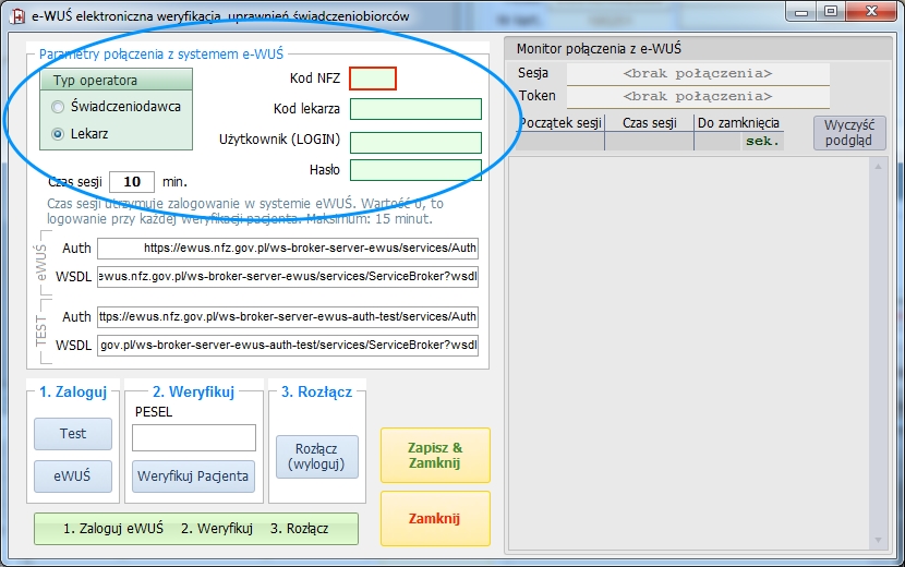![]() Poprawna współpraca z e-WUŚ wymaga wprowadzenia danych logowania. Dane logowania wprowadza się raz i zmienia w przypadku wprowadzenia do systemu nowego hasła. ![]() |