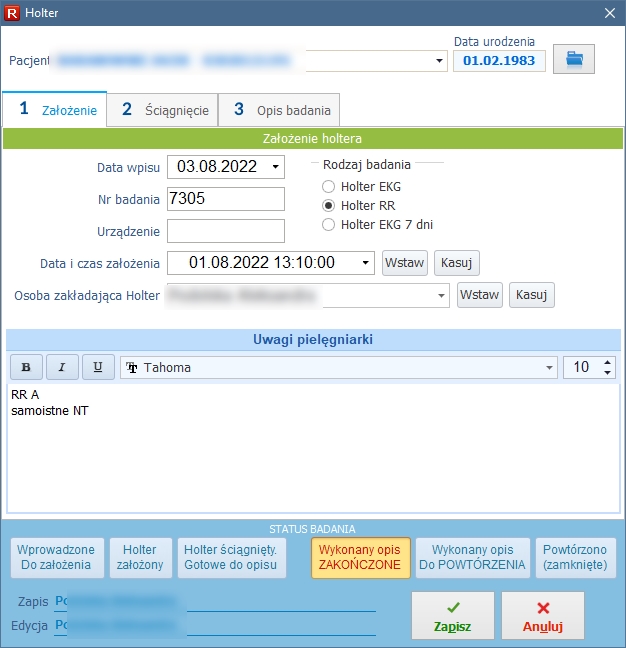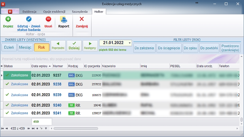 W opcji Ewidencja wprowadzono nową zakładkę Holter. System pozwalna na: ![]() Holter - ewidencja badań ![]() Holter - edycja Ewidencja badań holterowskich dostępna jest również w programie SOGaL. Zgromadzone wyniki badań dostępne są również w kartotece pacjentów. |