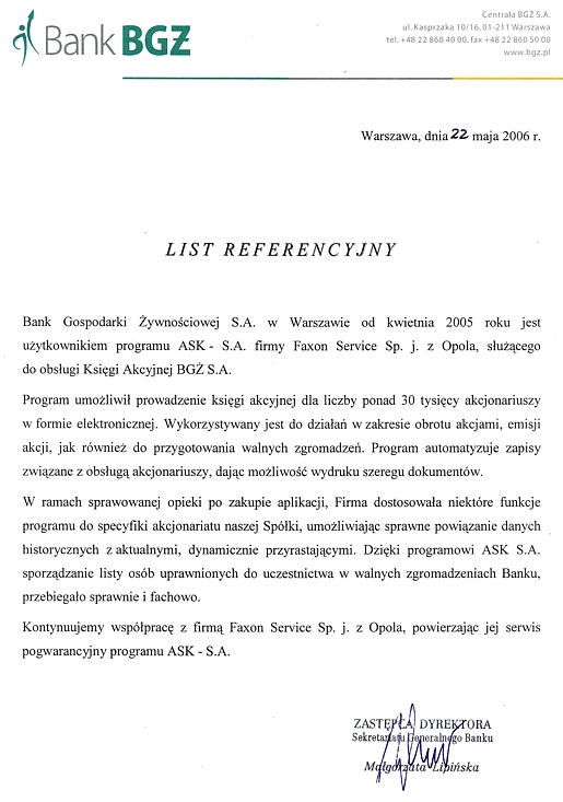 Bank BGŻ BNP Paribas S.A. | Warszawa- Przeniesienie licencji: ASK-SA.Księga akcyjna (2016.01)