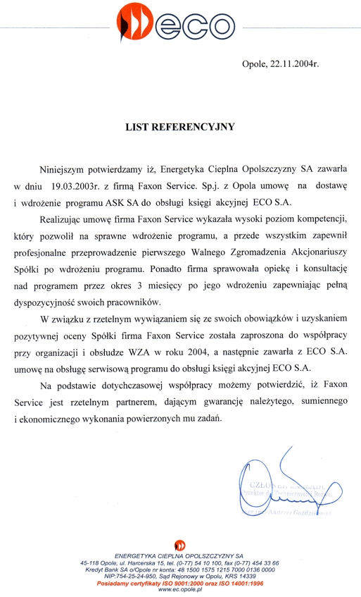 Energetyka Cieplna Opolszczyzny S.A. | Opole- ASK-SA.Księga akcyjna, obsługa WZA. (2004.11)