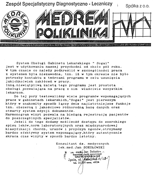 MEDREM Poliklinika sp.z o.o. | Opole- System SOGaL, Rejestracja, Laboratorium, Medycyna Pracy, Salomon - kadry i płace | Sprzęt komputerowy, serwery, sieć. (2008.10)